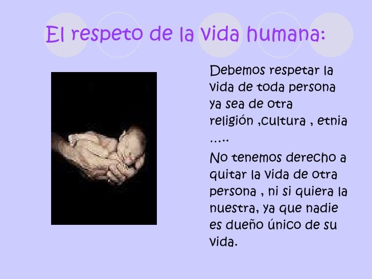 El respeto a la vida es el mayor de los respetos. Para ello es necesario contar con un concepto amplio del término 'vida'. La vida es lo más valioso para cualquier ser humano. La vida se ve vulnerada por la enfermedad y eventualmente por la muerte −el cese de la vida−.
